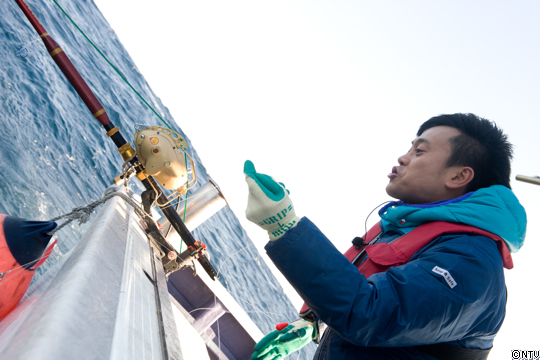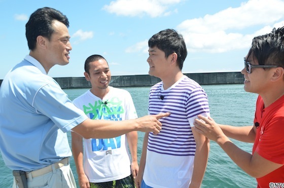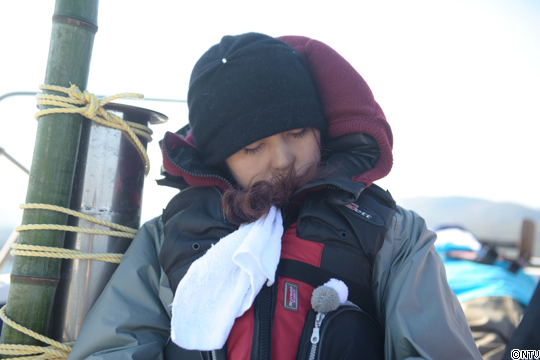 漁師さんのマイクを直してあげる心優しいベッキーちゃん。