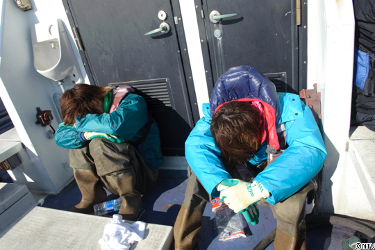 しかし実は、かなりの大しけで、船酔い者が続出していたんです。