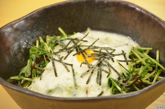 とろろ、ウズラの卵、刻み海苔をかけて完成!