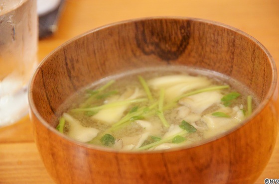 バターで炒めた舞茸と豆苗、味噌の香りが溜りません!