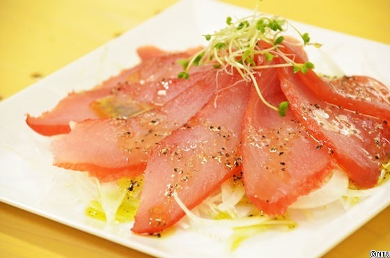 そのまま食べてもおいしいマグロの生ハム、今日はカルパッチョにしていただきます!