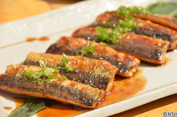 ぬたとは、酢味噌のことで高知特産葉ニンニクをすりつぶしたものと、味噌、砂糖、お酢を合わせたもの。料理人福永さんの手作りぬたでいただきました!