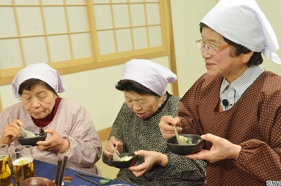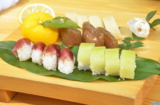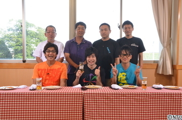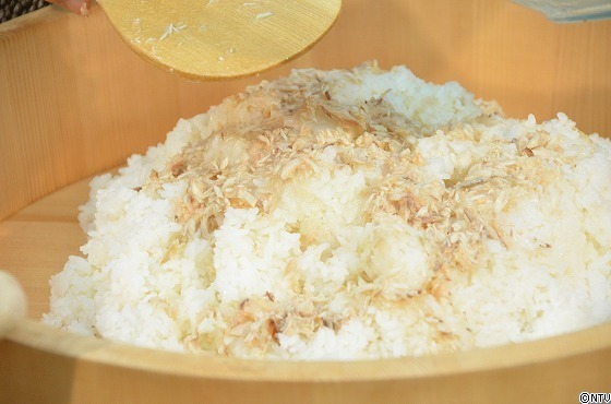 2人が田舎寿司を試食中、裏でマネージャーお2人がこっそり酢飯の試食をしていました。