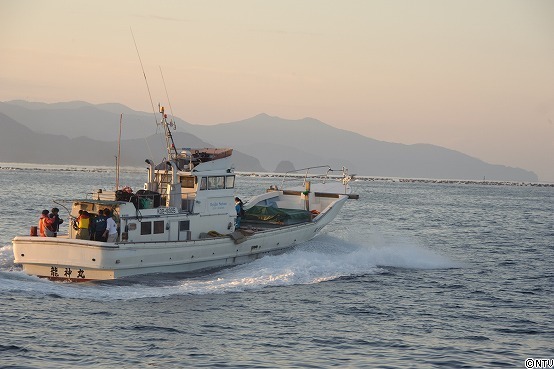 今回は、この沖の島近くの海でブリの一本釣りを行います!
