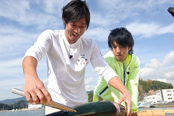 バットでブリを叩き、仮死状態にするのですがそれに上地さんが挑戦!