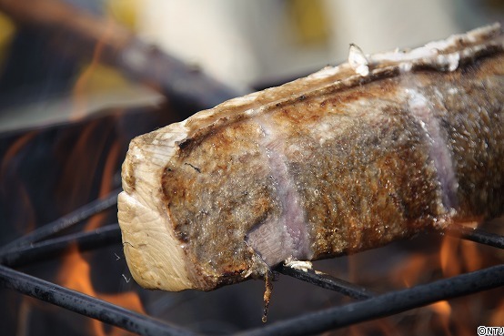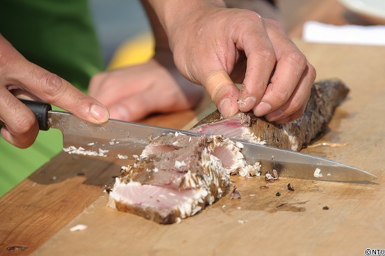 焼きたてのたたきを切ると、表面が綺麗に切れないのだそう。