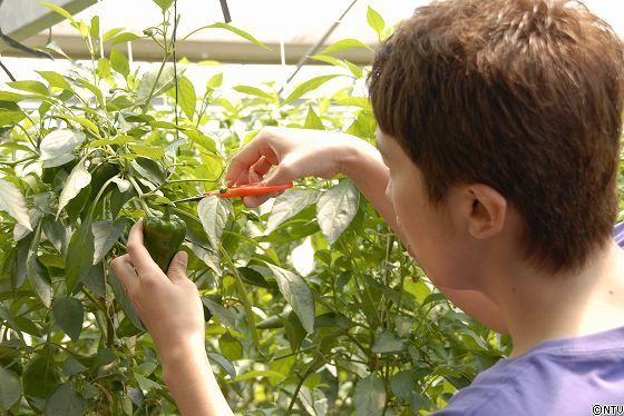 千夏ちゃんはピーマン作りに大切なてんとう虫捕りの名人。
