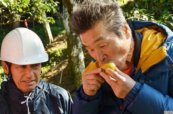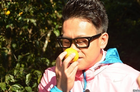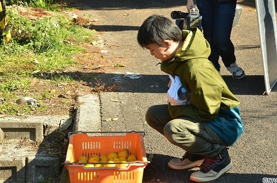 移動の準備中、収穫した柚子を見つめている番組APの姿が!