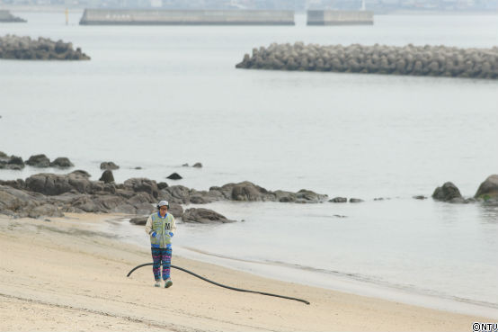 海岸を歩く大輔さん、