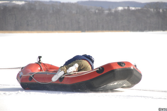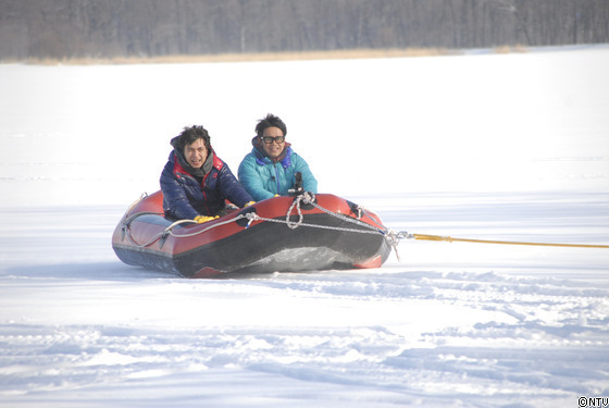 12月には全面凍結するらしく、この日の厚さは30cm程。