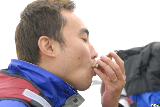 12時間の海の旅に、さすがにお疲れの大輔さん