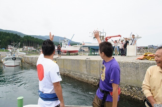大輔さん、船に乗り込む際に、スネを強打・・・