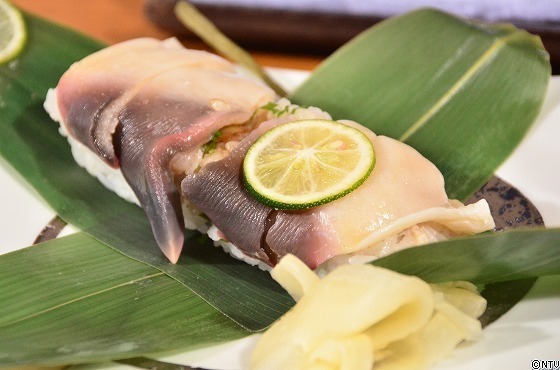 丁寧に作られた笹寿司、すだちの香りがとても合います!
