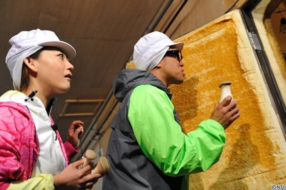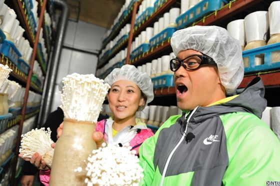 初めてエリンギ栽培の様子を見たお2人、興味津津!