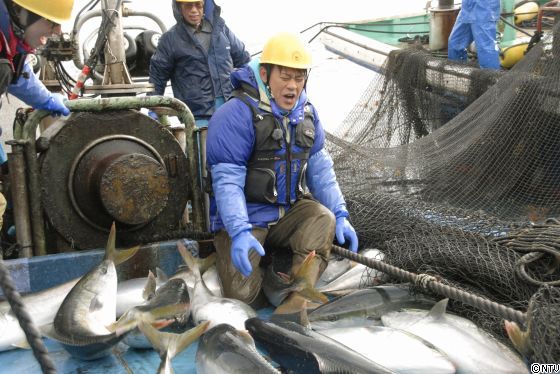 会議をしていた漁師さん達。なんでも、漁に行くか相談していたとの事。
