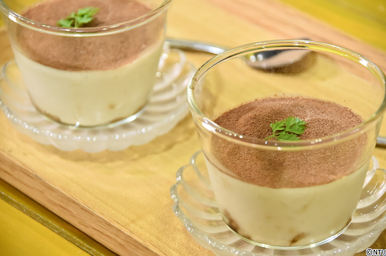 4 1を入れてココアパウダーを振りかけ、冷蔵庫で2〜3時間冷やす