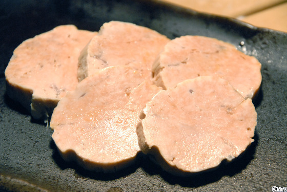 ①フライパンを熱し、肉かすを炒め、肉かすから油を出す
