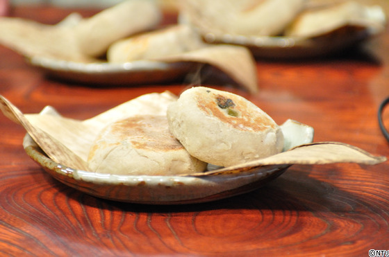 ⑧ 一口の大きさに取り、ワンタンの皮をまぶし蒸篭で7〜8分蒸す