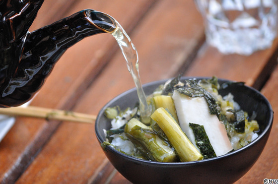 3.ご飯に刻み海苔と山わさびをのせて完成。お好みでお茶漬けにしてもOK