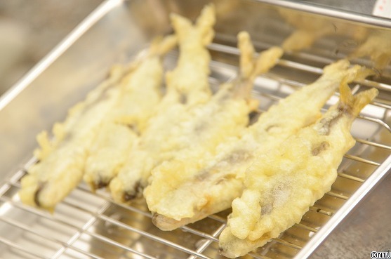 1.サヨリは頭と内臓を除き、腹の黒い部分はハブラシなどで洗い落す。水気をふいて腹開きにし、中骨と腹骨、小骨を取る。