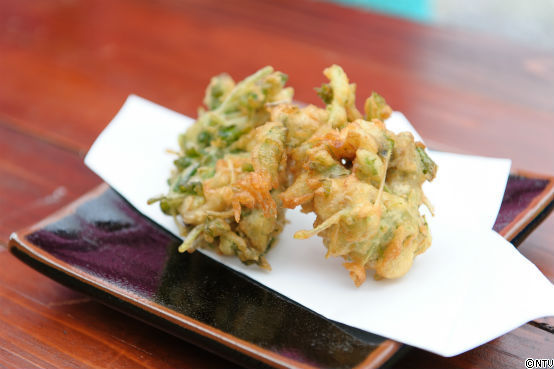 3.揚がったホッキ貝を一口大に切り、盛りつけて完成!