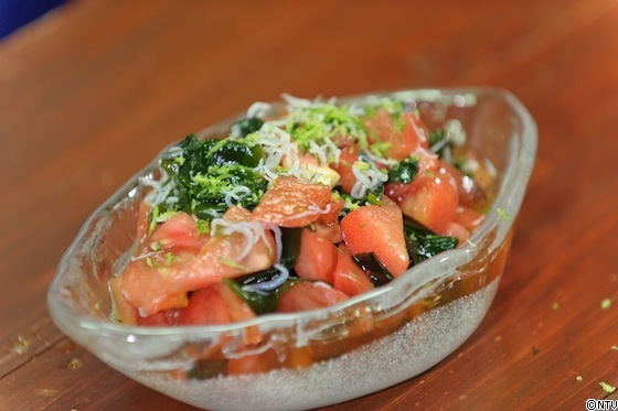 さらに青柚子搾り汁をかけ、青柚子の皮をすりおろし振りかけたら完成