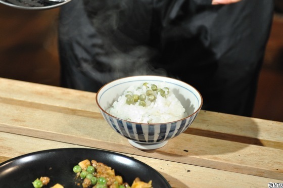 ⑦ 茶碗によそい、木の芽を飾って完成。