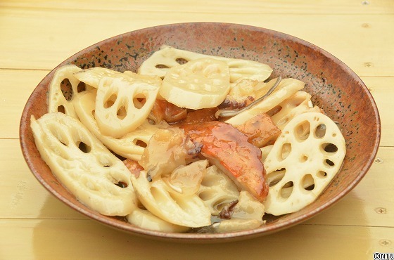 1.レンコンは皮をむき、斜めに5mmくらいの幅に切る。