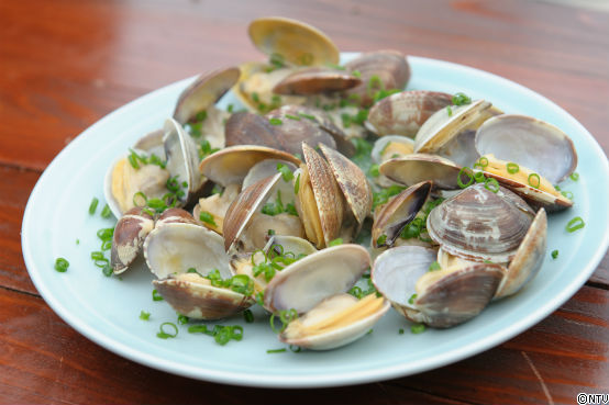 4.タマネギ半個を加え、しんなりしたらあさりを加え炒める
