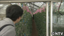 中ではたくさんのスイートピーが育てられていました。色とりどりのスイートピーに心癒された宮川さんは旅を続けます。