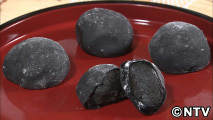 こちらは餅に竹炭を混ぜ、餡には黒ごまを混ぜ込むことで外も中も真っ黒にしています。