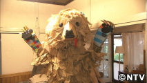ウェブデザインなどを主に制作している田中さんは、仕事柄指先しか動かさないことが多かったため体全体を動かそうと、6年前に段ボールなどの資源ごみを使って作る作品を作り始めました。特別な思い入れがあるものや大きな作品以外はワークショップなどに展示した後は解体して資源ごみに戻すことをコンセプトにしています。