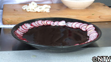 1.スライサーで輪切りにしたラディッシュを円状にお皿に並べる。