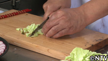 4.キャベツを1cm程に切る。