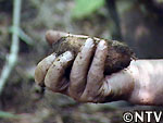 じつはこのカタマリはオニノヤガラの塊茎。その中に菌を蓄え、うまく共存関係を保っているのだという。