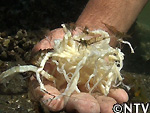 サキイカを仕掛けると、ユビナガスジエビやケフサイソガニの姿が!