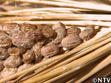 大豆を藁に包み、畑で発酵させた。初めて作った手作り納豆は、