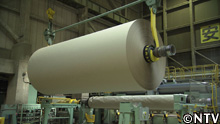 その後、薄い紙となった段ボールの原紙をローラーで巻き取っていく。
