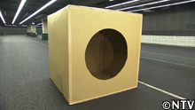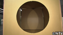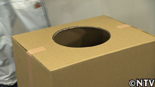 作戦を変更し、段ボールで即席で作った巨大ところてん式空気砲を作成。 |
