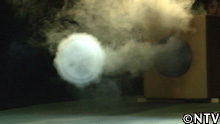 均等に押し出された空気は勢い良く渦を巻き、キレイな輪っかに。