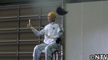 見事、ローソクの火を吹き消し、さらに城島リーダー人形のカツラも吹き飛ばすことに成功!! |