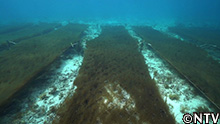 沖縄本島中部や久米島など、遠浅の海で養殖されるオキナワモズク。