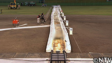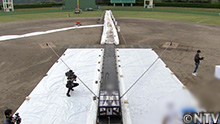 ヌルヌル素材を100mのコースに敷き詰め、その上を特製の発射装置から