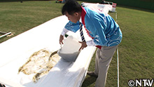 100mのコースに敷き詰める三陸わかめは、岩手県宮古市の田老町漁協の