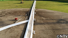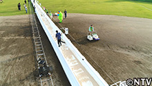 100mのコースに敷き詰めるアロエベラは、今年9月、宮古島を襲った、