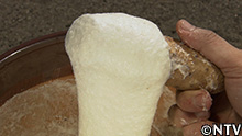 そのまますりつぶすとモチモチ感が出過ぎてしまうため、水を加えて、
