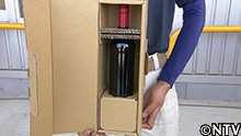 開発された、高さ3mから落としても瓶が割れない「緩衝材段ボール」や、