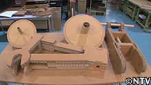 フレームに使うのは、車のエンジンや機械部品など重量物に使われる、強化段ボール。