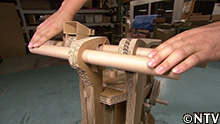 新聞紙を丸め強度をUPさせ、柿渋を塗ってフレームを作り、