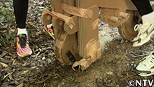 段ボールだけで作った自転車で、700m下り切って、ゴールへ!